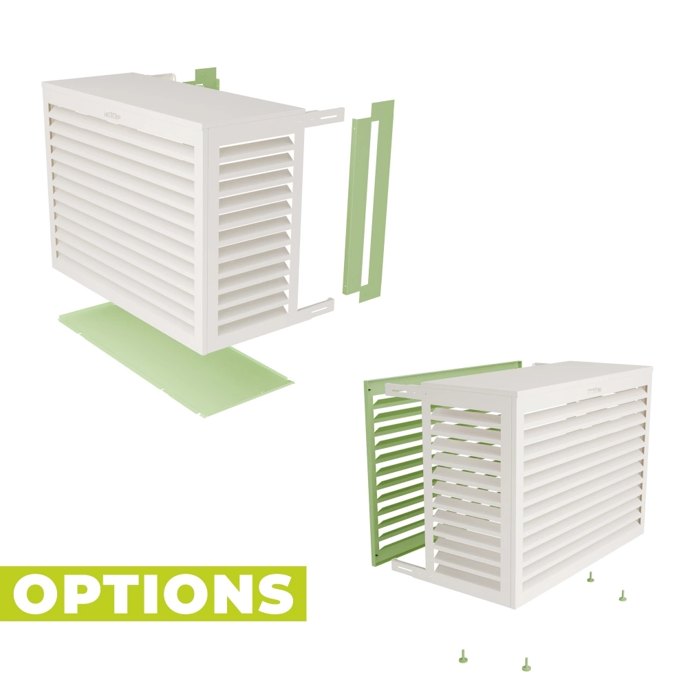 Για την επιλογή του μεγέθους, το μόνο που έχετε να κάνετε είναι να έχετε μετρήσει τις διαστάσεις της εξωτερικής μονάδας κλιματιστικού ή την αντλία θερμότητας και να μας ενημερώσετε για να βρούμε το κατάλληλο για εσάς.
